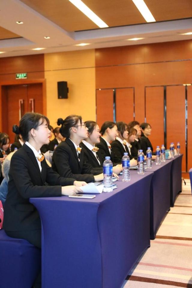 2019年12月4日在南京玄武苏宁诺富特酒店莱茵河厅举办了2019级诺富特精英班开班仪式,出席本次活动的有南京旅游职业学院旅游外语学院院长邵华女士,南京旅游职业学院旅游外语学院副院长褚琴女士,南京旅游职业学院旅游外语学院党总支副书记杜文文先生,南京旅游职业学院旅游外语学院日语专业负责人吕晋女士,南京旅游职业学院旅游外语学院应用韩语专业负责人杨婷婷女士,苏宁集团酒店管理公司领导酒店行政助理经理王子翔,酒店财务总监蒋平,南京玄武苏宁诺富特酒店总经理刘雯女士,南京玄武苏宁诺富特酒店人才与文化部经理朱宁女士。 开班仪式正式开始后,由南京玄武苏宁诺富特酒店总经理刘雯女士发表致辞,她表示希望校企合作给双方带来深远的影响。刘雯女士希望诺富特精英班的开设带来校企合作的新纪元,带来酒店、学校、学生三赢。