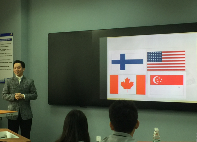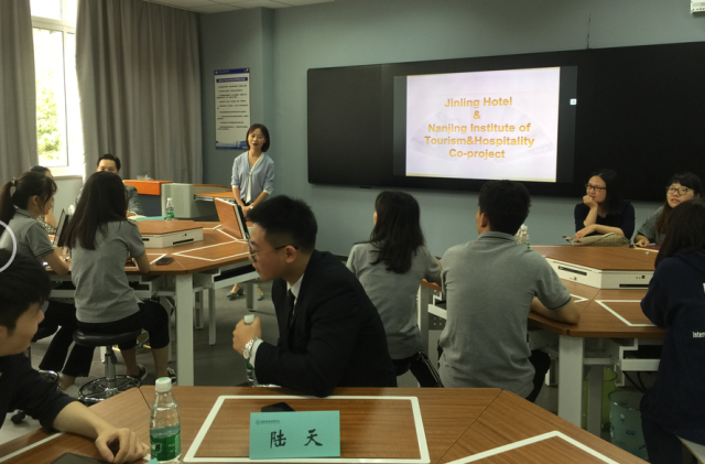 2019年9月25日,金陵饭店集团八位员工在质培部经理何珊珊的带领下来到教学楼智慧商务教室,与旅游外语学院英语教研室的教师及183旅游英语班(酒店方向)的同学分享了海外学习与工作经历及美国、加拿大、芬兰、新加坡四国文化,拓宽国际化视野。 金陵饭店集团公司是旅游外语学院校企合作单位,2002年底在原南京金陵饭店基础上组建的江苏省属国有独资公司。曾经的“神州第一高楼”,开改革开放风气之先,被誉为“中国旅游饭店业的一面旗帜”;而今的金陵,转型升级实现发展飞跃,实体投资、连锁经营强壮酒店业务板块,产业延伸进军养老业务板块,形成“酒店业与健康养老”两大产业。集团有着一群海外学成或工作归来的员工,本次来我校分享的八位员工均为海外留学归来的员工,有一定的海外工作经验。 分享首先由旅游外语学院刘寒雨老师担任主持人,致欢迎词;接着八位员工分工合作,以个人演讲为主,辅以视频与PPT,全程用英语流畅地道的介绍了芬兰,包括音乐、语言、国家概况、历史、节日习俗和芬兰名人;随后是加拿大,包括地理分布、首都渥太华、语言介绍、著名城市温哥华、景区等;接着是美国,包括体育运动、教育、大学的体育明星、在国外学习的经历与体会如开放的心态,不断去体验,不断突破;然后是新加坡,包括语言文化、旅游景点、美食、教育。整个演讲过程贯穿着与在座师生的互动,最后是何珊珊经理总结陈词。 本次分享近一个半小时,结束后在座教师和学生均表示讲座非常阳光、幽默、开拓了国际化视野;也期待下次与金陵饭店合作的教研活动。