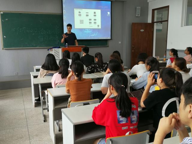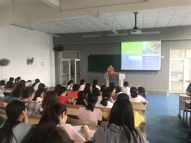 与此同时,吕晋老师在2402给18级日语专业学生展开专业间的分享与交流。日语专业自2000年开始招收首批五年制旅游日语专业学生,自2002年开始招收首批三年制旅游日语专业学生,并于同年成立了日语教研室。吕晋老师表示,目前我系的日语专业已形成了结构梯队合理、稳定且具有发展潜力的专业教学师资队伍,目前日语专业重在培养具有扎实的日语语言基础知识和技能功底的学生,且通过在校期间的理论学习能较熟练地运用日语语言及相关知识,在饭店、旅行社、航空公司、景点、日资企业等相关行业工作的应用型、复合型和国际化的高职旅游人才。