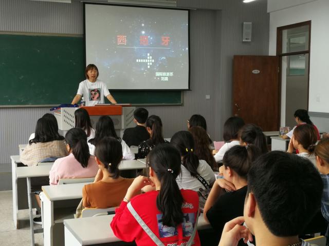刘晨老师从我系西班牙语专业的发展历史、课程体系设置等方面带领学生熟悉并了解本专业。西语专业自2012年开始招收首批三年制应用西班牙语专业学生,根据目前的旅游发展趋势开设的新专业,毕业生具有良好的就业前景。同时,根据西班牙语专业实践性强的特点,给学生详细介绍了以职业能力为核心的模块式高职应用西班牙语课程体系。