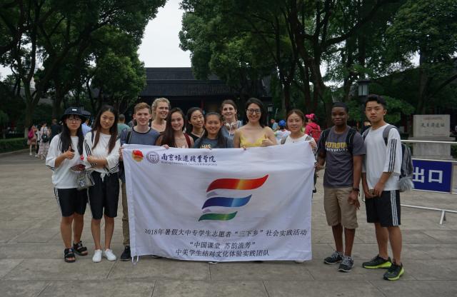 7月7日,国际旅游系“中国课堂 苏韵流芳”中美学生结对文化体验实践团的4位队员和指导教师霍翠平一起陪同美国普渡大学8位交换生开展结对文化体验第二次活动。 上午中美学生一起学习了从中华文明产生到现在的5000年悠久历史,美国交换生们了解到中国历经多次政权演变和朝代更迭,也曾数次成为世界上最强大的国家,经济、文化、科技世界瞩目。
