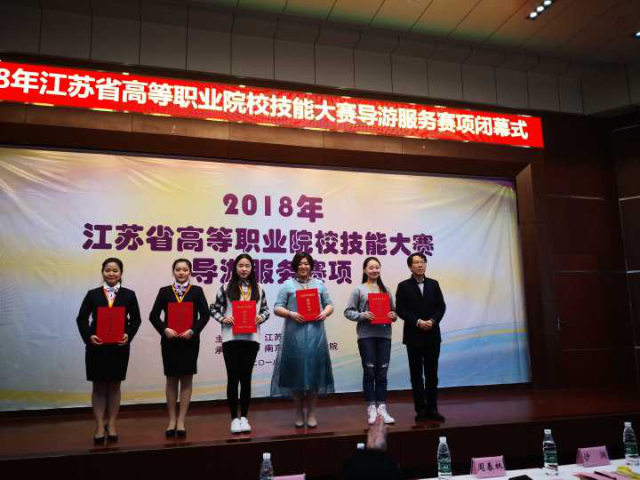 2018年3月25日,由江苏省教育厅主办、南京旅游职业学院承办的“2018年江苏省高等职业院校技能大赛”导游服务赛项在我校举行,赛项分中文和英文两个组别。国际旅游系指导团队培训的英文组两名选手刘悦及余海娟均获得大赛一等奖,成慧及陆志慧老师获得优秀指导教师荣誉。 本次大赛中,英文组75%的内容都必须以英语形式呈现,包括旅游文化元素创作讲解和自选导游词讲解,具有一定难度,也是考核涉外导游能力的关键。因此英文赛场的选手们的表现各异,阶梯式等级明显。 国际旅游系自寒假备战,就组成了指导团队。173旅游旅游英语专业刘悦同学中途参赛,准备时间仅为20天,其语言功底良好,但缺乏旅游文化的储备,备赛期间努力认真,大量储备旅游文化知识,其参赛讲解的主题分别为昆曲和科举博物馆,她的讲解语言地道,文化内涵深厚,跨文化展示能力卓越。余海娟同学有一定的参赛经验和旅游文化储备,但英语语言能力一般。指导教师以及邵华主任全力指导,选手自身也深受震撼,觉得这是自己20年的语言的爆发式突破。其参赛的讲解主题分别为黑茶和夫子庙,选手现场展现自然流畅,绘声绘色,讲解内容内涵深厚。 选手的卓越表现离不开指导团队的指导。系部总体统筹,提供全方位的帮助;团队原创5分钟导游词;指导教师早出晚归,放弃了休息日;邵华主任,褚琴副主任每天亲自督促选手的语音和展示能力;旅游英语教研室的教师搜选出大量的英文旅游文化知识,并进行筛选总结创作及讲解方法;选手的才艺得到了卢凤萍老师及杜文副书记等的支持。正如,团队中一名老师所言“这一次,我们全力以赴,因为不想留下任何遗憾。”这一次国旅系的团队没有任何遗憾。参赛的各项内容也将更好得指导国际旅游系的涉外旅游人才培养和相关课程教学,从而真正实现大赛的宗旨“以赛促教,以赛促学,以赛促训”。