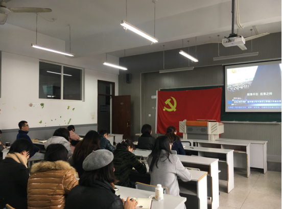 中午12:30,教师支部全体党员在教学楼2309教室集体回看上午举行的2017国家公祭活动现场视频并共同学习习近平总书记十九大报告第十二章的内容“坚持和平发展道路,推动构建人类命运共同体”。