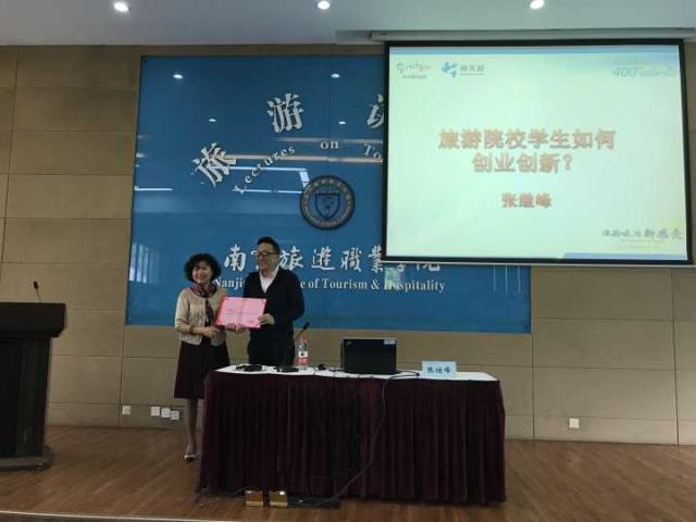 5月3日下午,应国际旅游系的邀请,南京舜天海外旅游职业培训学校校长、江苏省旅游局旅游行业培训专家、江苏舜天海外旅行社行政事业部总经理张继峰先生来到我校,在二号楼报告厅给我系师生做了题为“旅游院校师生如何创新创业?”的讲座,受到大家的热烈欢迎。 张校长首先怀着浓浓的人文情怀从古诗和对联谈起自己的名字,指出信任是交流的第一要素,导游活动中应该想方设法地让对方记住自己的名字以建立信任。之后张校长从互联网最新的创业项目——摩拜MOBIKE共享单车谈起,旁征博引,指出创新创业的两大要素——解决痛点和商业模式。解决痛点即企业必须要有市场,也就是痛点,要学会挑问题。有问题还需要合适的商业模式,比如共享单车中的共享模式。接下来张校长提出了“弯道超车”的概念,指出当今是快速发展充满变革的时代,充满了机遇,我们每个旅游人应该借助互联网做好自己,并就创业的方向给大家提出了建议,指出不管创业成功与否都会给大家积累大量的工作经验。此外,张校长指出旅游学院的学生应该了解旅游,去体验旅游的吃、住、游、购、娱,学会运用互联网工具进行创业,建议同学们可以利用平时的碎片时间实地去感受旅游,不能局限在书本上的知识。 “江山代有人才出,各领风骚数百年”,最后张校长鼓励同学们平时关注互联网、关注旅游,在最好的年华为社会做出最大的贡献。 此次讲座受到了国际旅游系全体师生的一致好评,国际旅游系主任邵华女士为张校长颁发了行业带头人聘书。为了进一步的交流和学习,全系师生还和张校长共建了一个微信群,期望在新的平台能和行业专家多学习、多交流。