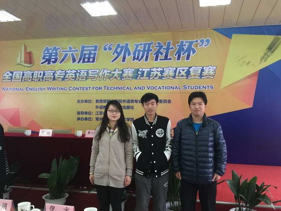 11月15日,由教育部职业院校外语类专业教学指导委员会、外语教学与研究出版社主办,省教育厅指导的第六届“外研社杯”全国高职高专英语写作大赛(江苏赛区)在常州信息职业技术学院举行,全省共有68所高职高专院校的172名选手参加了本届比赛。在国际旅游系姚瑶、张宝琳两位老师的悉心指导下,14级商务英语专接本班的邢彬同学获得英语专业组一等奖,145旅游管理本科班的谢敏同学和153应用西班牙语班的唐扬同学分获公外组一等奖和三等奖,两位一等奖选手邢彬和谢敏将代表江苏省参加12月在北京举办的全国总决赛。 图中从左至右分别为谢敏,唐扬和邢彬 |
