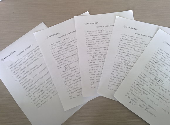 从学校出发赶赴三大景区 5月18日为“国际博物馆日”,今年首次将主场城市定于南京,并举行了盛大的开幕仪式,能 参与这种大型公益活动,对同学们来说是难得的机会。上午9时,南博小组率先抵达南京博物院,穿上 印有“志愿者”字样的工作装,10名同学分别被派到到博物院入口、历史馆游客服务中心等地进行咨询 接待服务。“民国馆怎么走?”、“洗手间在哪里?”、“特展馆都展些什么呀?”等问题,不绝于耳。 从开始时的语焉不详,到很快适应并准确回答,嗓子哑了、腿僵了、脚皮也磨破了,但收获更多的是游 客们的一句谢谢,内心的一分喜悦 咨询引导,签名点赞 在苜蓿园地铁口,中山陵、明孝陵景区附近,你总能发现一群身着南旅院校服,斜披绶带的志愿者 们。他们或不时向游客们发放宣传手册,普及“中国旅游日”、 “ ‘畅游’江苏”与“南京青奥会 ”的基本概况;或邀请路人填写有关问卷调查,以搜集民众对江苏旅游的了解情况与建议;或派 发中山陵各景点图册,解说钟山景区内的大好风光,尽一份志愿者的微薄之力。腿走酸了,衣湿透了, 却挡不住大家志愿服务的热情。