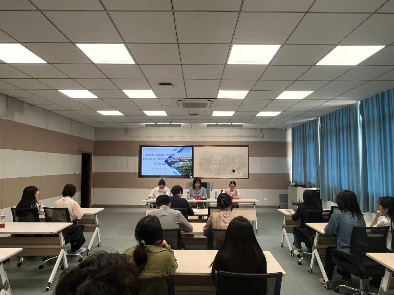 为进一步推动教师职业发展,2025年4月29日,旅游外语学院于教师发展中心开展了职称申报和双师认定辅导讲座。本次讲座邀请了人事处(党委教师工作部)副处长刘广东和许倩倩老师担任主讲,旅游外语学院全体教职工积极参与,讲座由旅游外语学院院长姚瑶主持。