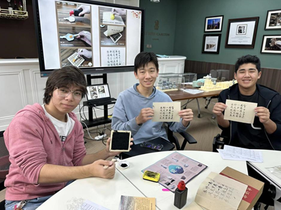 手作的温度,点燃了同学们对中华文化的深厚情感。在活动尾声,大家手捧着自己的拓印作品,再次情绪饱满地朗读起上面的诗词。这一次,他们的声音里多了几分理解与共鸣。在党员教师的引导下,他们不仅理解了“举头望明月,低头思故乡”的月下思乡,也感受到了“欲穷千里目,更上一层楼”的哲理与气魄。诗词的韵味,中文的魅力,在这一刻真正地浸润了他们的心田。