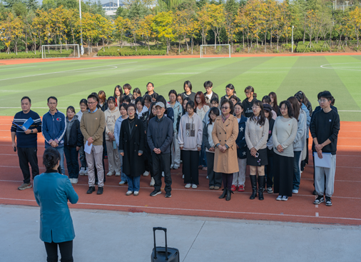 2025年11月12日,旅游外语学院学工党支部在体育场举行“党旗引领助成长,五老关爱护远航”主题党日活动暨关工委关爱活动。校关工委秘书长谢晓美、骨干成员缪大宁与杜琳,旅游外语学院党总支书记陈海艳、副书记卢淳,校心理健康教育中心徐金华老师,以及学院学工党支部全体党员、入党积极分子、2025级家庭经济困难学生和少数民族学生代表参加了本次活动。活动由学工党支部书记史迁主持。