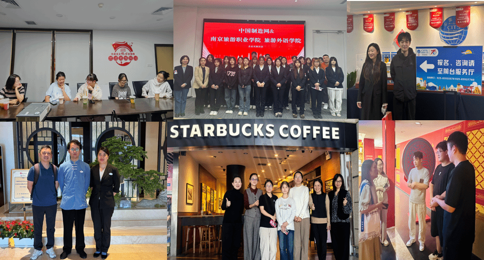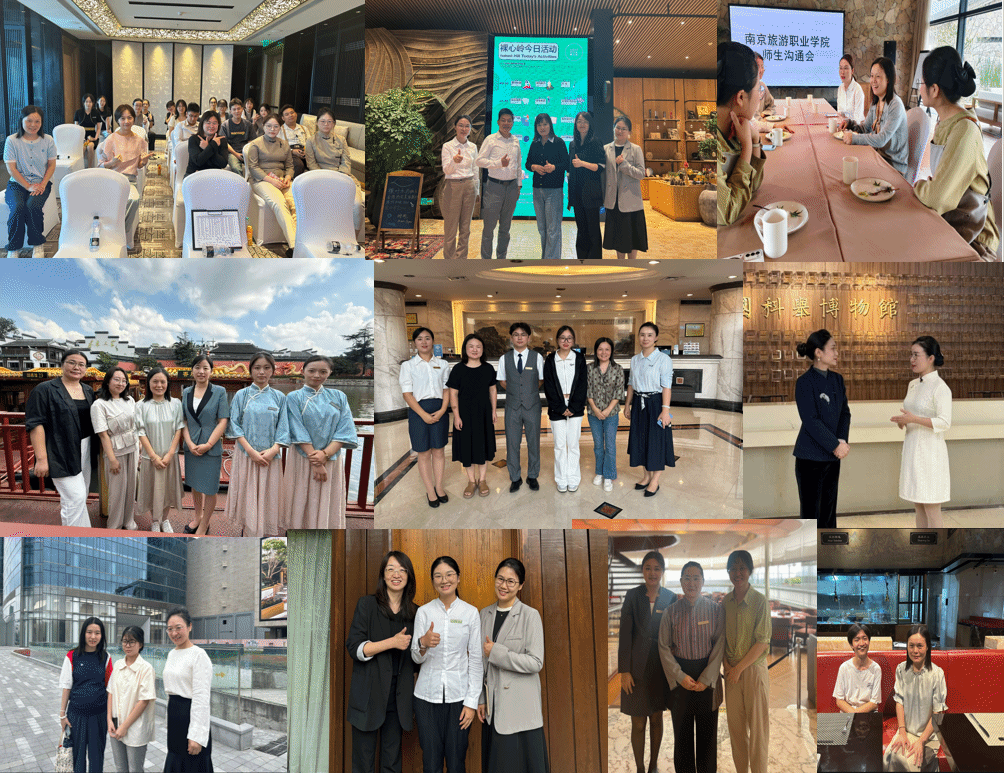 2025年7月至10月,旅游外语学院组织由班子成员、专业教师和辅导员组成的团队,陆续走访14家企业,开展访企拓岗并看望实习生。所访企业涵盖高星级酒店与餐饮、旅行社及文博景区、跨境电商三大类别,包括南京丽思卡尔顿酒店、南京裸心岭酒店、南京西康宾馆、南京紫峰洲际酒店、南京禄口机场铂尔曼酒店、南京万达希尔顿酒店、江苏锦江南京饭店、上海星巴克经营有限公司、中青旅江苏国际旅行社、南京秦淮风光旅游股份有限公司、中国国旅(江苏)国际旅行社、南京中国科举博物馆、南京记忆文化展览馆、焦点科技股份有限公司等。