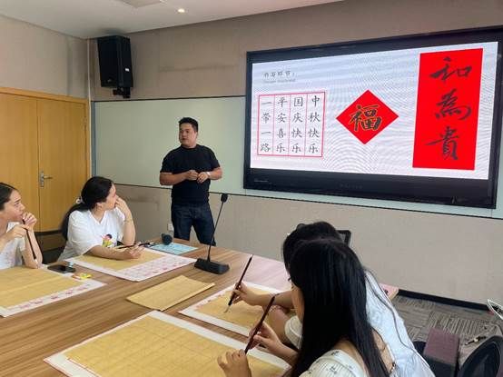 为弘扬中华优秀传统文化,促进中外学生文化交流,10月8日,旅游外语学院在学生社区会议室举办了以“四海同心筑梦圆,翰墨连心谱新篇”为主题的国庆中秋文化活动。学院党总支书记陈海艳、党总支副书记卢淳、辅导员叶斯哈提老师共同参加了活动。来自哈萨克斯坦的留学生及少数民族学生40余人共同在墨香中感受中国书法的独特魅力,度过了一段充实而有意义的假期时光。