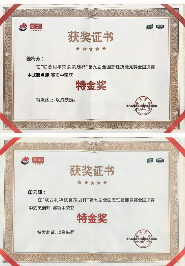 在这场烹饪技艺的巅峰对决中,我院烹饪与营养学院青年教师印云辉、姜梅芳,经过多轮紧张而激烈的角逐,最终脱颖而出,分别荣获中式烹调师赛项与中式面点师赛项的特金奖。