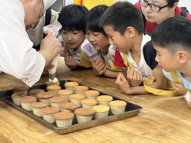 清洗消毒后,西点大师向孩子们介绍了饼干制作流程及注意事项,教师指导和示范下,孩子们便迫不及待地开始动手操作了。奶油打发塑型入模、一次次修补,生动有趣的活动让孩子们耳目一新,为日常的学习生活增添了一份色彩,亲手制作点心的体验更让他们体会到美食制作的乐趣。