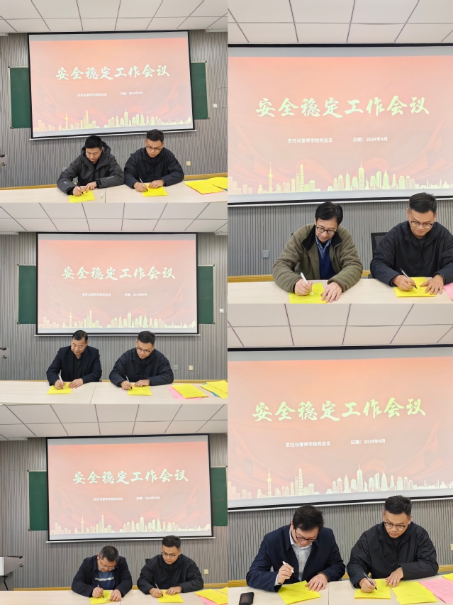会上,党总支与实训中心、实训中心与各教研室及蜂巢餐厅、各教研室与所属教师签订了各级2024年度安全工作责任书,确保安全稳定工作责任制落实到位。