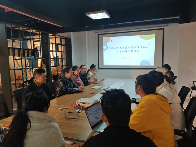 为进一步贯彻全国高校思想政治工作会议精神和中共中央、国务院《关于新时代加强和改进思想政治工作的意见》精神,选树榜样,激发奋进动力,继续推进助理班主任队伍建设,12月11日,烹饪与营养学院于大学生创新创业中心会议室举行烹饪与营养学院一站式学生社区学生助理受聘仪式。烹饪与营养学院党总支书记陈瑶、关工委副主任胡国勤、团总支书记段牡钰、22级辅导员、23级新生辅导员及16位班级助理参加了此次会议。会议由陈瑶主持。
