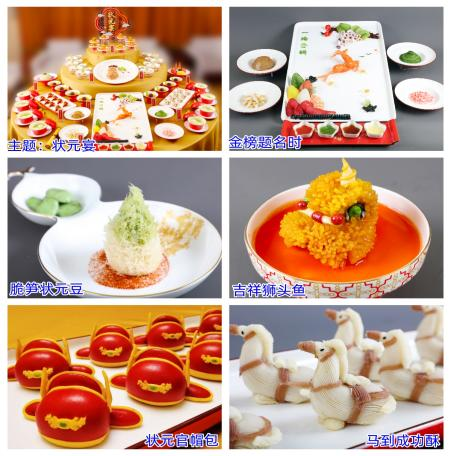 烹饪学生组赛项分为宴席策划书设计、规定菜制作、宴会菜点制作、展台呈现与答辩四个部分,我院代表队的参赛主题为“状元宴”,整桌宴席以状元文化为脉络,彰显宴席传统、提升文化内涵、推动菜品创新、助力产业升级,激发了学生团队合作意识与实践成才热情。