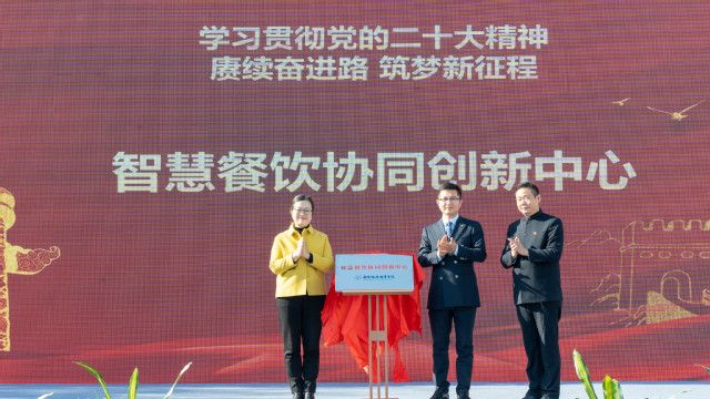 文脉铸魂担使命,技能强国谱新篇。为深入贯彻党的二十大精神,全面学习宣传习近平文化思想,深入挖掘中华优秀传统文化所蕴含的时代价值和精神力量,烹饪与营养学院在学校党委的领导下,于2023年11月22日在马踏飞燕广场成功举办第十二届美食文化节暨蓝蛙·大学生创新创业实践成果展。烹饪与营养学院全体教职工及近千名学生参加了本次活动。开幕式上,南京旅游职业学院党委委员、副院长洪涛、烹饪与营养学院院长吕新河与江苏华怡明都酒店集团副总裁、分公司总经理刘为民共同为“智慧餐饮协同创新中心”揭牌,为深耕我院产学研创用平台建设开启了新篇章。