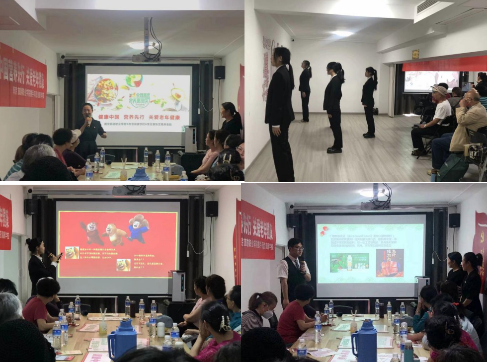 本次活动主题为“健康中国 营养先行 关爱老年健康”,烹饪与营养学院专业教师、食育与营养社团指导教师吕慧、朱星桐,江苏省文化和旅游厅重点实验室副主任焦锐教授,以及20余名同学共同参与。吕慧首先为社区老年人群介绍了全民营养周的主题,并强调了老年群体在日常饮食中食养的重要性以及如何科学开展健康饮食,提升健康水平。同学们则带来一场活力四射的全民营养操,在“慧”吃“慧”动、健康体魄的营养操中,收获的不仅仅是健康体魄,还有欢声笑语!