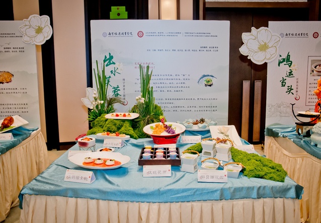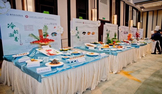 “中餐烹饪技艺创新作品”展区分为淮扬名点主题宴席、缔制菜肴主题宴席、中餐技艺非遗传承、工艺造型主题宴席、冷菜美食主题宴席、狮子头主题宴席六大展台,共有100多道菜品。每一道创新菜品选料严谨、制作工艺精湛、菜品设计精美,注重突出长江流域江苏段饮食文化特色以及江南夏季饮食习俗特点,而且从现代消费者角度出发极力呈现菜品的健康、营养及美感等时尚要素,使每一道创新菜品既呈现地域特色,又不乏时代气息,充分彰显了长江文化带江苏段中餐饮食的魅力。