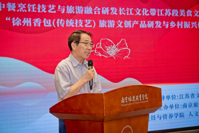 由烹饪与营养学院承担的中国非遗研培计划——“2023年中餐烹饪技艺与旅游融合研发长江文化带江苏段美食文化旅游品牌培训班”(总第14期)在经过为期30天的学习后于近日结束。为检验研培效果,展示研培成果,6月14日下午,学院在御冠酒店为两个培训班隆重举行“赓续中华文脉,勇担传承使命”贯彻落实习近平新时代中国特色社会主义思想主题教育“三个一线”行动暨“茉莉花·开”主题结业典礼暨成果汇报展。本次活动由学院主办,烹饪与营养学院、和学院非遗旅游研究所联合承办。