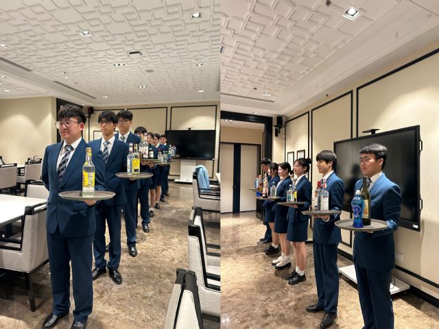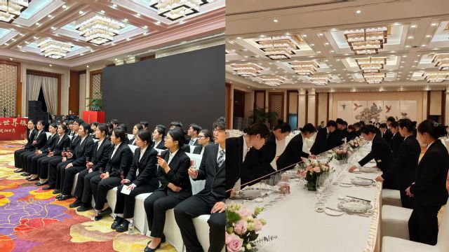 成功的背后是坚持不懈的学习、训练!在校内,除了有专业教师的课堂理论授课、现场示范、实操演练等,同学们还利用早晚自习、课余等时间开展专项训练。在南京东郊国宾馆,同学们参观了服务场地,听取老师对服务流程、服务标准、分工合作的讲解。宁夏葡萄酒投资发展集团文旅总经理云鹏宇先生还在现场为同学们介绍了葡萄酒相关礼仪及酒水知识,从“品鉴酒款名称、品种、酒精度、口感、菜肴搭配、价格等”分析了接待用的六款酒水。