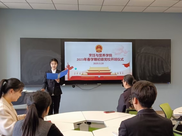 为深入学习贯彻党的二十大报告精神,提高学生对党组织的认识,端正入党动机,有目标、有系统、有针对性地学习党的基本理论、基本知识及二十大精神,烹饪与营养学院党总支2023春季初级党校于3月21日开班。本次参训入党积极分子共计26人,培训历时两周。