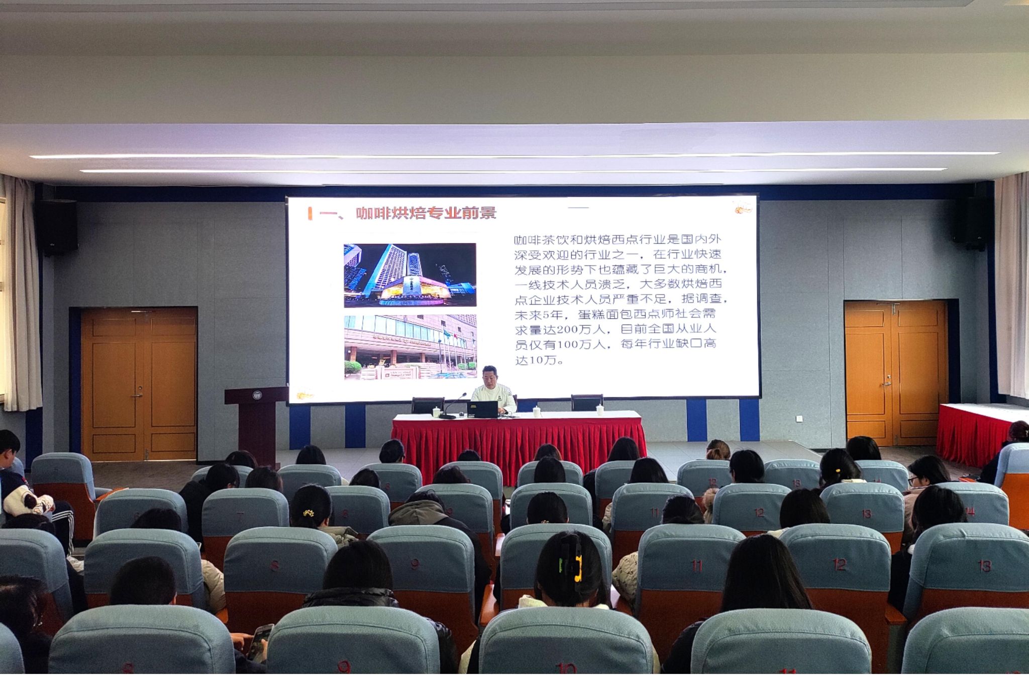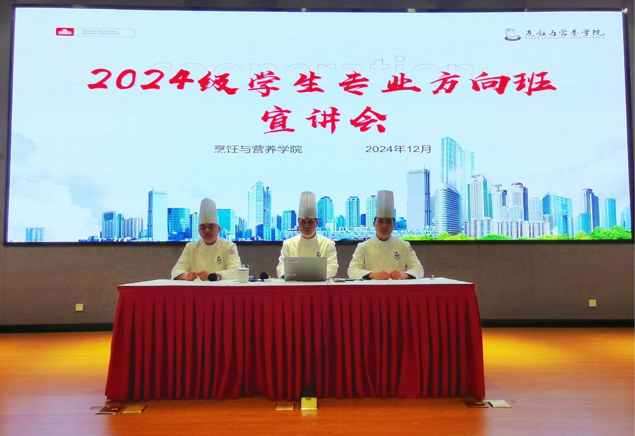 12月11日,烹饪与营养学院在学院报告厅举行2024级学生专业方向分班宣讲会。本次宣讲会旨在为新生们详细介绍学院三个特色班级——冷菜艺术班、咖啡烘焙班、蓝蛙精英班,帮助同学们更好地规划自己的学业和职业生涯。