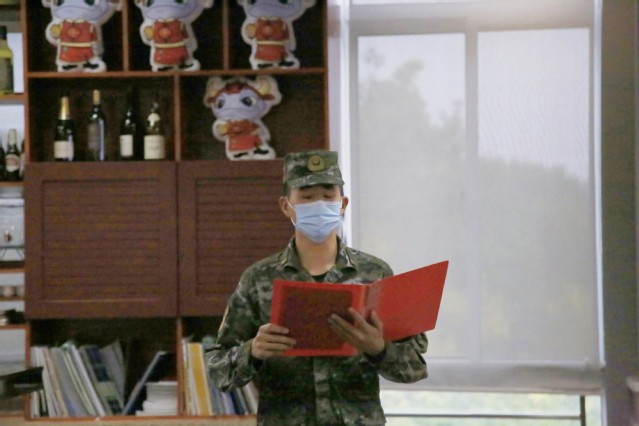 武警江苏总队机动支队勤务保障大队陈斌大队长宣读了此次培训班“学习标兵”,并为获奖学员颁发证书。