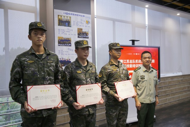武警江苏总队机动支队胡伟电副支队长宣读了此次培训班“优秀学员”名单,并与吕新河院长一同为优秀学员颁发证书。