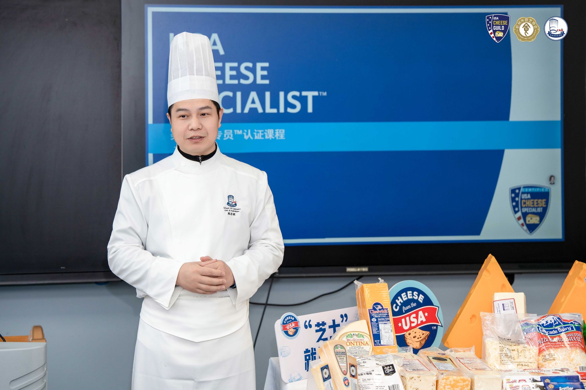 3月5日,南京旅游职业学院迎来了一场别开生面的“美国奶酪专员”认证课程。活动由美国奶酪协会主办,高志斌智能烹饪技能大师工作室协办。学员是来自全国各地的星级酒店总厨和烹饪与营养学院的老师,此次活动旨在提升学员对美国奶酪产业的了解,培养专业的奶酪知识。
