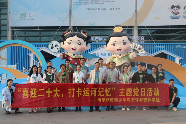 党的二十大召开在即,广大党员群众倍感振奋,为了进一步激励烹饪与营养学院师生的责任感、使命感和荣誉感,9月下旬,正值第四届大运河博览会在苏州举办期间,学院党总支精心筹划,组织全体党员及部分学生代表赴苏州开展了一场“喜迎二十大 奋进新征程”主题党日活动。