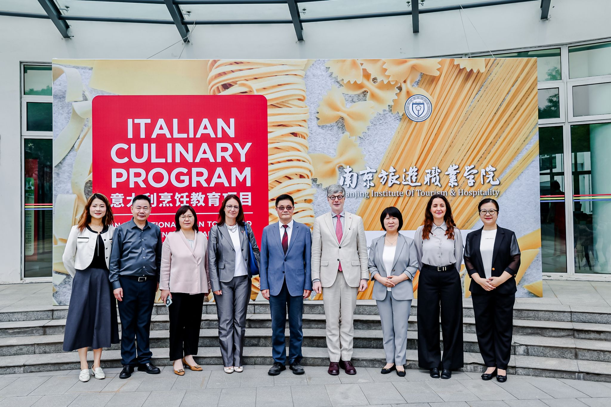 5月28日,由意大利对外贸易委员会(ITA)上海代表处主办,意大利驻沪总领事馆支持的意大利烹饪教育项目在南京旅游职业学院烹饪与营养学院盛大举行,此次活动不仅是双方饮食文化和烹饪技艺的交流与切磋,更是中意两国在教育、文化领域深度合作的生动实践。这也是该项目继 2021年后,再次落地南京旅游职业学院。江苏省文化和旅游厅科技教育处处长李明珍、南京旅游职业学院党委书记叶凌波,副书记、院长操阳,党委委员、副院长洪涛,意大利驻沪总领事馆总领事安缇雅(Tiziana D’Angelo)女士,意大利对外贸易委员会上海代表处首席代表迪嘉庆(Augusto Di Giacinto)先生,副代表俞客(Velia Filippelli)女士带领的意大利代表团,以及烹饪与营养学院全体师生共同参加了本次活动。