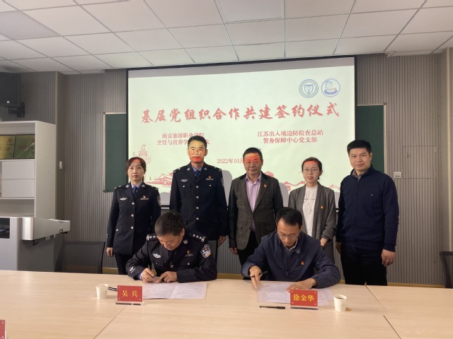随后学院党总支副书记徐金华与江苏边检警务保障中心党支部书记吴兵签署“基层党组织合作共建协议”。
