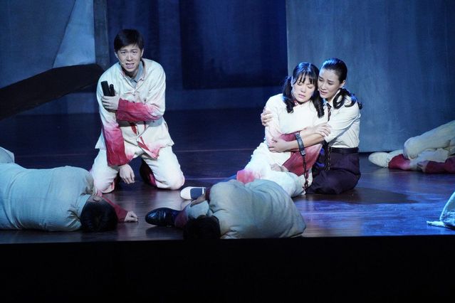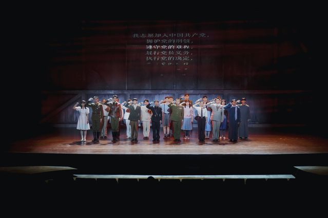 演出进入尾声时,当慷锵有力的入党誓言响起,全场肃穆,所有师生起立,以洪亮的声音与雨花烈士扮演者共同庄严宣誓,重温入党誓词,接受丹心洗礼。