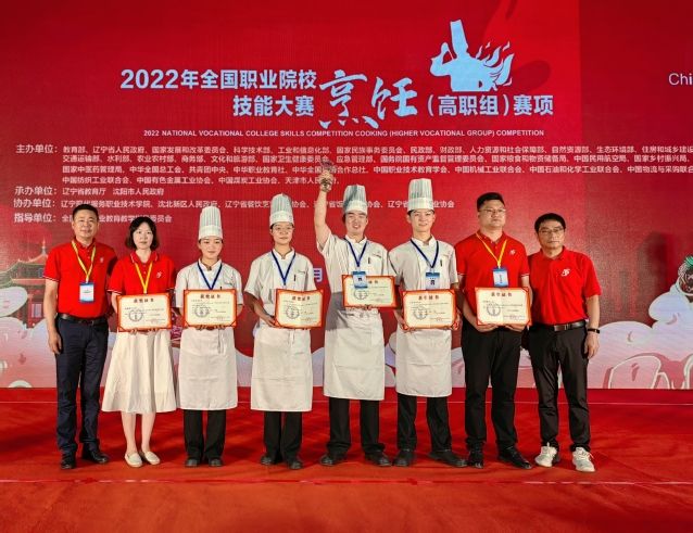 8月19日-24日,2022年全国职业院校技能大赛烹饪(高职组)赛项在辽宁现代服务职业技术学院举行。我院烹饪与营养学院选手张久雨、周群、丁翰、谷玥四位同学组成的团队作为江苏代表队参加比赛,获得高职组团体一等奖的好成绩,史居航、陈媛媛老师获得“优秀指导教师”荣誉称号。