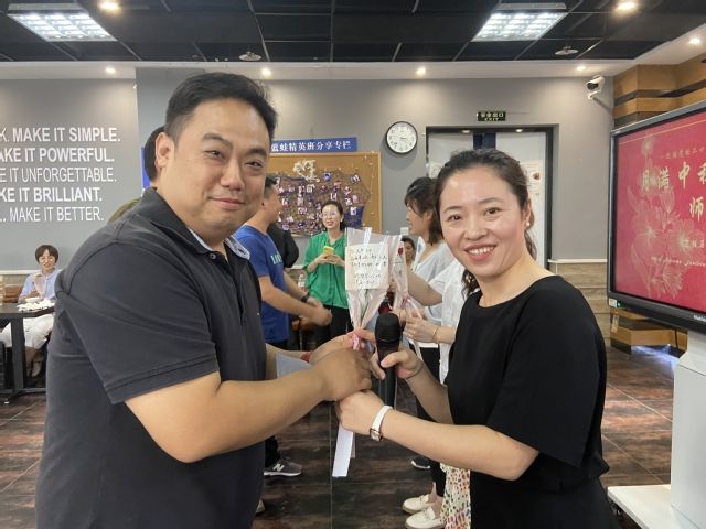 烹饪与营养学院始终大力弘扬尊师重教传统,强化榜样引领感召和师徒传承,引导广大教师坚定理想信念、厚植爱国情怀、涵养高尚师德,在第38个教师节来临之际,吕新河院长专门致辞,带领大家回顾了一年来取得的成绩,也向全体教职工的辛勤工作和无私付出表达了最真挚的感谢,并亲笔为学院每位教职工题写“私人订制”祝福语,新老教师们互赠鲜花,互道祝福,活动现场温情满满。