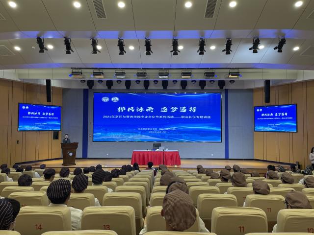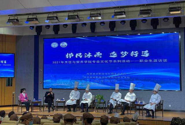 2021年烹饪与营养学院专业文化节系列活动之“栉风沐雨 逐梦远行”主题活动于2021年12月17日在南京旅游职业学院图书馆报告厅顺利举行。本次活动旨在提高学生职业素养,引导学生科学地进行职业发展规划,为未来更好地就业奠定基础。活动主要面向21级学生,由职业礼仪讲座和职业生涯访谈两个部分组成。