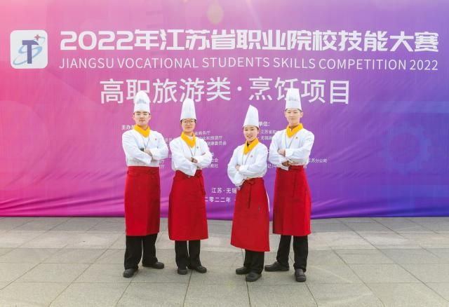 2022年江苏省职业院校技能大赛高职旅游类•烹饪项目在无锡圆满收官。来自全省的12支参赛代表队经过激烈角逐,我校烹饪与营养学院张久雨、丁翰、周群和谷玥同学组成的团队,一举夺得一等奖(唯一)!