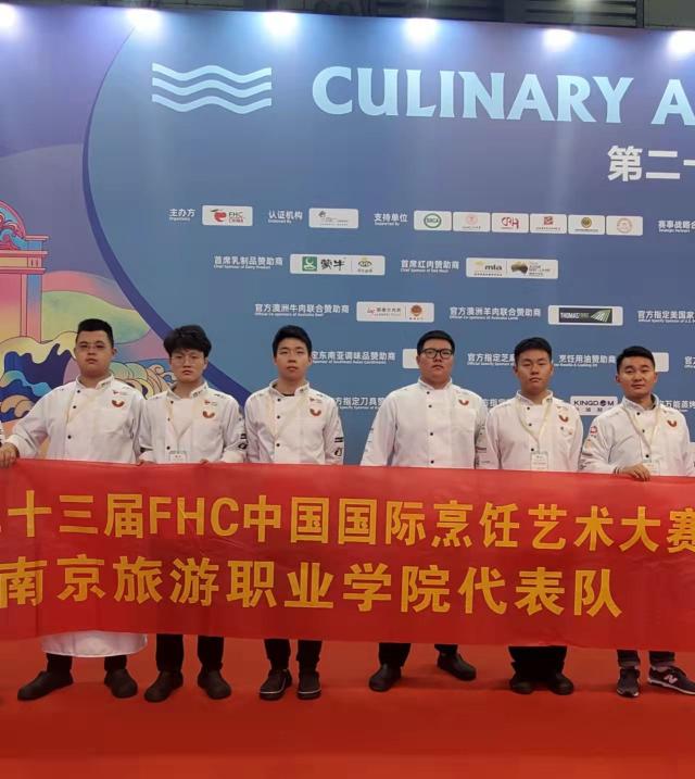 金秋传喜讯,大赛获佳绩。2021年11月11日,在第二十三届FHC国际烹饪艺术比赛青年组赛项中,我校烹饪与营养学院学生获得三金一银一铜的好成绩,其中刘冠廷、秦松获西式手工意面主菜烹饪金牌,姚飞洋、沈琪许可分别获得冰岛北极红点鲑鱼西式主菜烹饪金牌和银牌,韩赵文获澳洲羊肉西式主菜烹饪铜牌。