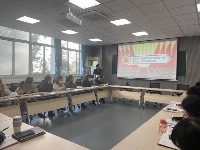 会议伊始,党总支副书记徐金华从四个关键词出发,梳理解读了六中全会公报,即(1)根本问题:“全党要牢记中国共产党是什么、要干什么这个根本问题”,(2)伟大成就:“党领导人民自信自强、守正创新,创造了新时代中国特色社会主义的伟大成就”,(3)人民至上:“全党必须永远保持同人民群众的血肉联系”,(4)伟大复兴:“为实现第二个百年奋斗目标、实现中华民族伟大复兴的中国梦而不懈奋斗”。随后,全体党员通过专题学习视频学习了《中国共产党第十九届中央委员会第六次全体会议公报》及习近平总书记《关于〈中共中央关于党的百年奋斗重大成就和历史经验的决议〉的说明》的主要内容。