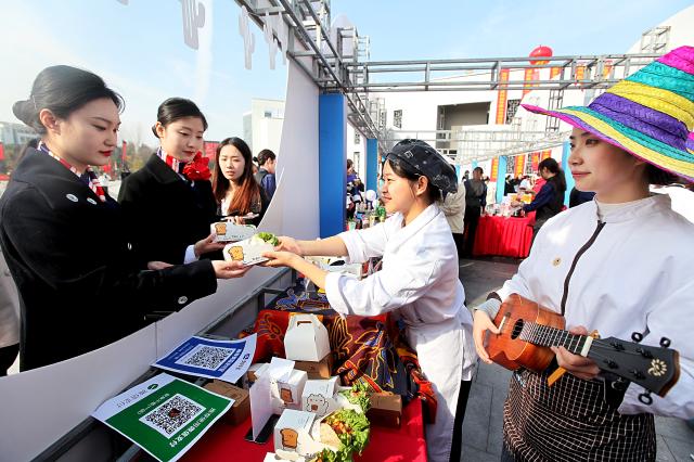 宴饮体验活动结束后,美食节正式“开市”,来自烹饪与营养学院的近400名大学生以大学生创新创业项目为依托,开设了近50家门店,设计了数百道美食,所有的门店都是由学生在老师的指导下自行创意,从店名设计到食材的选配及菜品的营销均由学生自主完成,每个门店项目还吸引了其他二级院系的学生和老师的参与、支持,在财务管理、市场营销、装饰设计、电子商务等方面补齐了短板,增强了项目的实力。美食文化节现场人山人海,每个门店都有许多食客驻足品尝,既是彰显健康饮食理念和传统饮食文化的盛会,也是学生走向社会前的一次创新创业的实战演习。