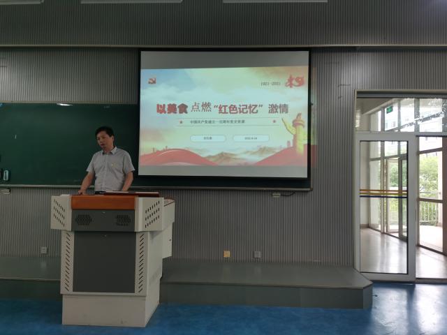 为扎实推进党史学习教育深入开展,2021年6月16日下午,烹饪与营养学院教工党支部在教学楼2202开展了“美食点燃‘红色记忆’激情”专题党课学习。本次党课由烹饪与营养学院教工党支部史红根书记担任主讲人,全体教师党员参与本次学习。