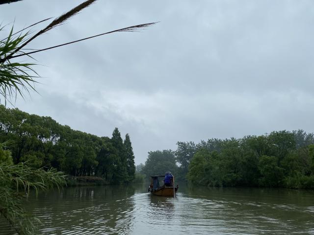 最后大家来到了挺拔的芦苇荡,为了感受当年老百姓冒着生命危险掩护新四军伤员穿梭在芦苇荡的情景,大家登上了手摇船。小船在茂密的芦苇荡中穿梭,仿佛带着大家进入那战火连天的年代。摇船的“阿庆嫂”为我们介绍了当时的一些不为人知抗日故事,以及军民共同抵御外敌的感人事迹,油然而生的自豪感洋溢在“阿庆嫂”的脸上。也再一次深刻体会到了军民一家亲以及中国人骨子里那份不屈不挠的民族精神。