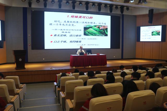 马开良教授本次讲座主题为“食育塑人”。食育,是一门教人饮食、并通过饮食培养人格的学问。食育不单单是基于食物的营养教育,还是技能教育,生活教育。马教授系统阐述了食育对塑人形、塑人品、塑人格的深远影响与实际意义。与国外食育的蓬勃发展形成鲜明对比的是食育在中国刚刚起步。马教授在大学生中开展食育讲座,丰富了我校学生健康饮食教育的生活内涵。马教授从人为什么要吃、人应该吃什么、人应该怎么吃、食育激发五育、食育福泽民族等五个方面向学生们详释了健康饮食的理念,阐释了饮食与德智体美劳五育的关系,饮食对塑造人品、健全人格的重要作用和饮食教育对民族振兴的长远意义。
