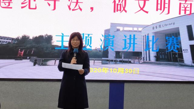 为加强学生法制教育,普及法律知识。烹饪与营养学院于10月30日晚上6点在教学楼报告厅开展了第三届“遵纪守法,做文明南旅人”主题演讲比赛。烹饪与营养学院原党总支书记胡国勤,党总支副书记胡爱英,刘银凤、姜梅芳两位老师以及19级、20级的部分学生参加了本次比赛。