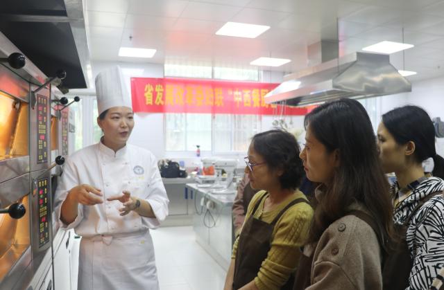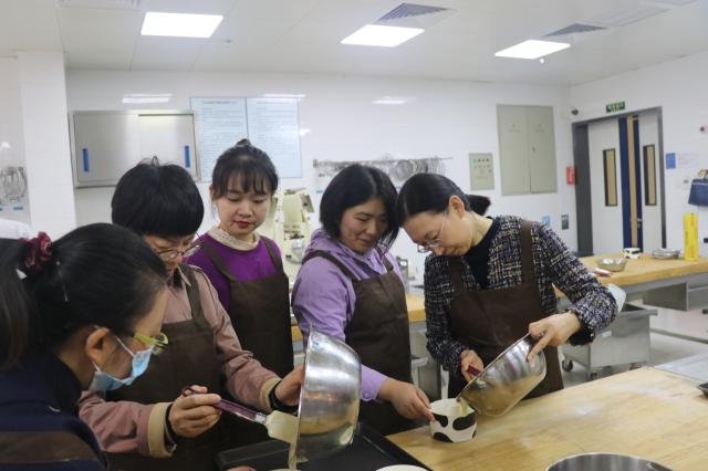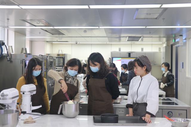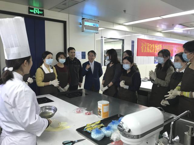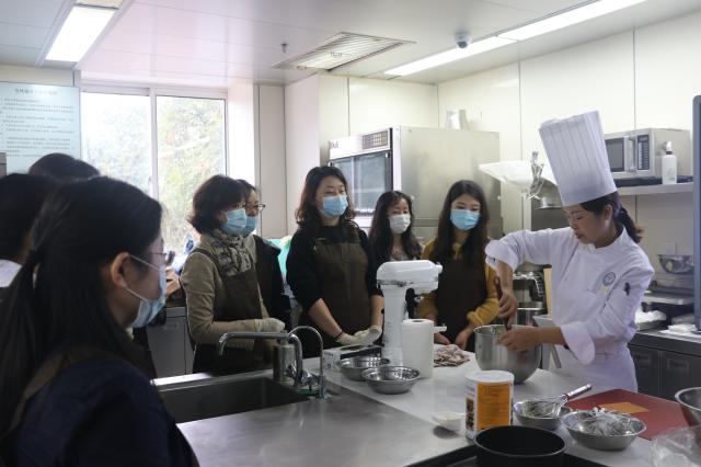 10月27日上午,江苏省发展和改革委员会妇女联合会一行45人来到烹饪与营养学院参加“中西餐厨艺”之烘焙实训体验活动。烹饪与营养学院主持工作副院长颜忠负责接待本次活动,并安排中西面点工艺专业陈永芳和解莉两位老师担任指导教师。