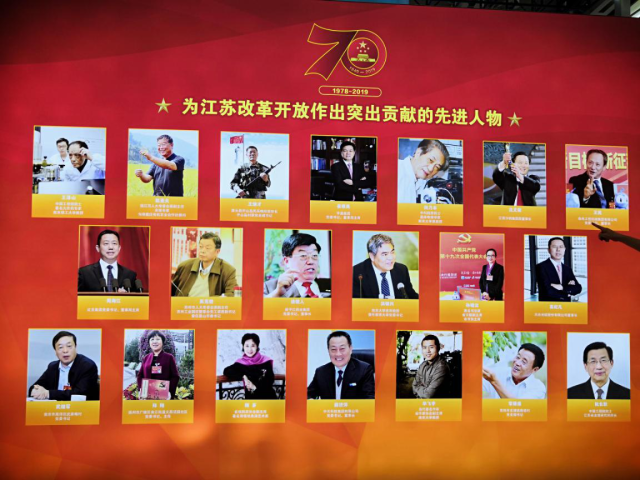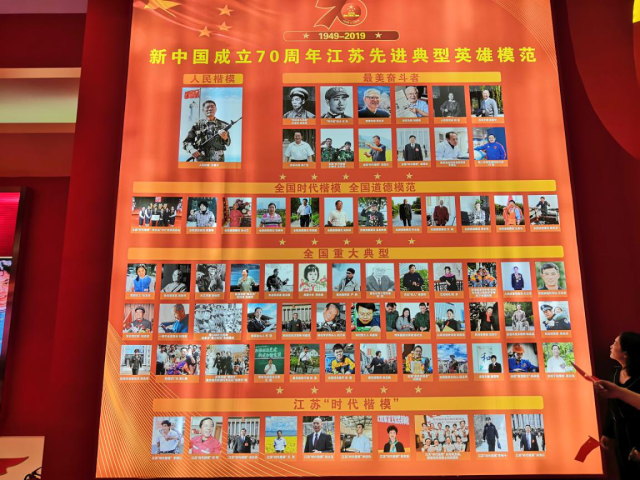 成就展展陈总面积12000平方米,分为综合展、地方展和室外展三个展区,展出图片(图表)2000多张,实物、模型、沙盘100多件(套),视频及多媒体展品100多件(套),先进典型和英雄模范人物(集体)228个。南京专题展区是江苏省13个设区市专题展区的第一站。展厅上方是采用声光电展示的“我们走在大路上”70米书画长卷,书画长卷以秦淮河为轴,串联起南京城的山水城林和田园风光、城市建设和新农村建设成就、历史文化街区和地标性建筑等,像一帧帧电影画面,同时又浑然一体,吸引观众徐步绕行,欣赏书画中的大美南京。