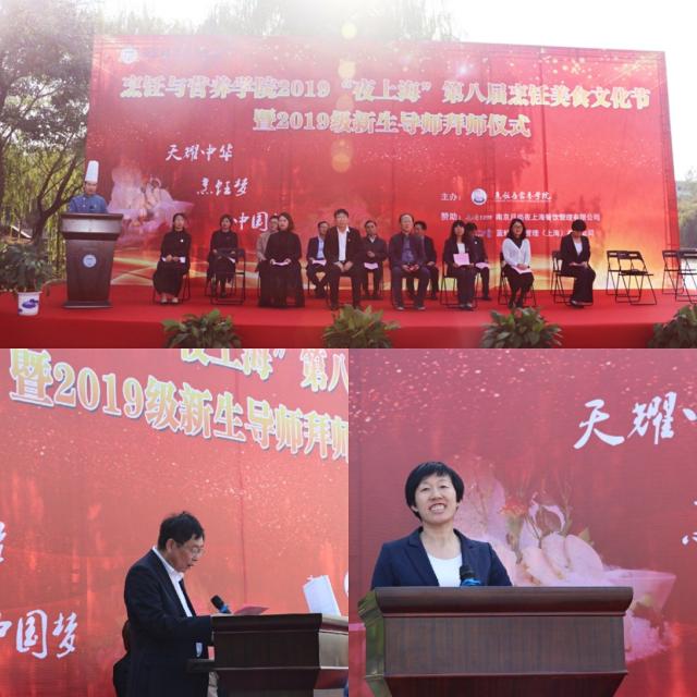 开幕式由学校纪委书记田寅生致开幕词,他指出美食节活动有利于提高学生的专业技能、思想道德和职业素质水平,进一步激发学生的创新创业热情,提升学生的创新思维与创业实战能力。烹饪与营养学院副院长颜忠致欢迎词,他强调此次烹饪美食文化节活动是烹饪与营养学院为深入贯彻习近平总书记“十九大”报告精神和扎实推进“不忘初心,牢记使命”主题教育活动而开展的展现教学改革与特色教育教学成果而推出的系列活动。让学生能够在为期一周的系列创新实践活动中有所收获,有所成长。南京月尚夜上海餐饮管理有限公司代表发表了热情洋溢的讲话。