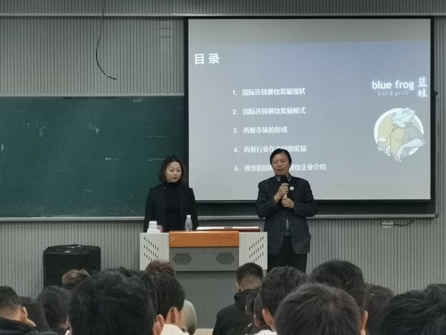 近年来,中国餐饮业一直保持高速发展的状态,而随着人们消费观及生活水平的提高,西餐业凭借其多样化、品牌化、连锁化等特点,在我国异军突起。讲座中,李女士激励同学们在学习中要巧抓机遇,勇于创新,对西方文化要善于辨别思考,取其精华,去其糟粕。