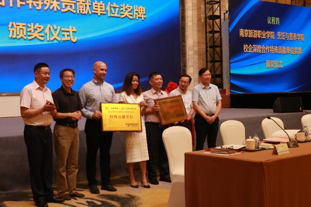 为了表彰校企合作突出贡献单位,南京旅游职业学院特授予蓝蛙餐饮(上海)管理有限公司和南京月尚夜上海餐饮管理有限公司为校企深度合作特殊贡献单位,授予美心卓联餐饮(上海)管理有限公司、上海国际会议中心、南京金陵饭店、南京御冠酒店等十家企业为南京旅游职业学院示范实习基地。